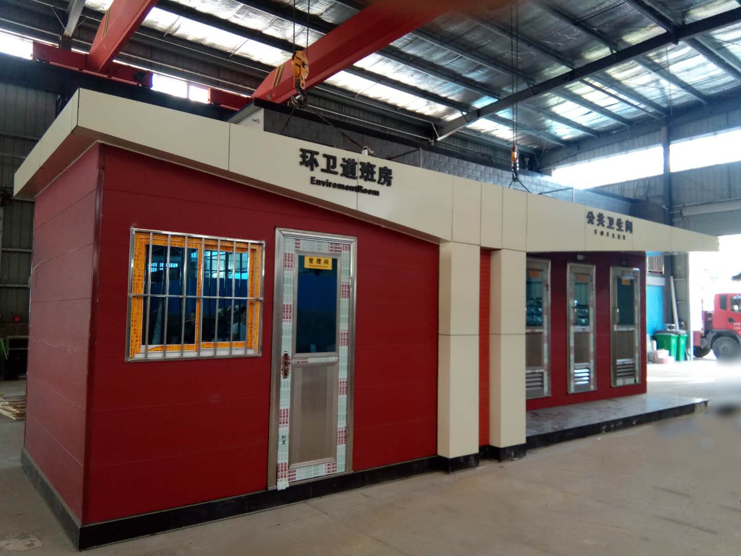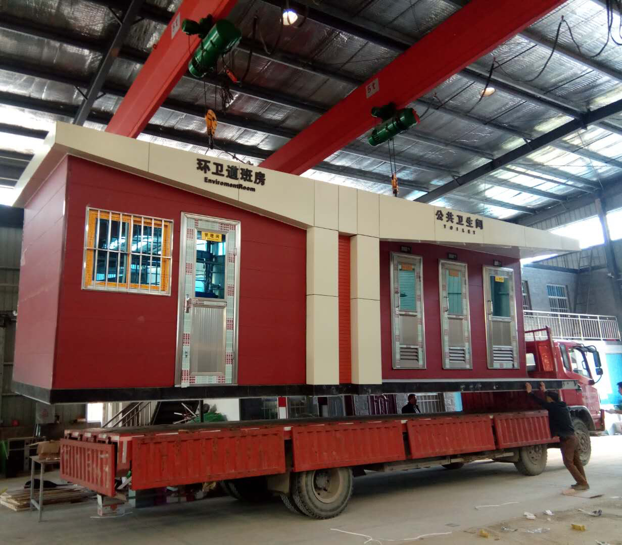 移動(dòng)廁所簡介及制作方法:1、房體結(jié)構(gòu): 采用輕鋼龍骨結(jié)構(gòu),鋼材全部使用國家標(biāo)準(zhǔn)鍍鋅鋼材。根據(jù)房體的大小特選用國標(biāo)方管(50-100)焊接而成。鍍鋅管厚度為2.8mm,方管經(jīng)過徹底除銹后進(jìn)行鍍鋅、防腐處理,處理后的結(jié)構(gòu)使用壽命均在20年以上。這樣就會(huì)延長廁所使用壽命,使整座廁所的穩(wěn)固性更強(qiáng)、更加結(jié)實(shí)耐用。2、墻體...