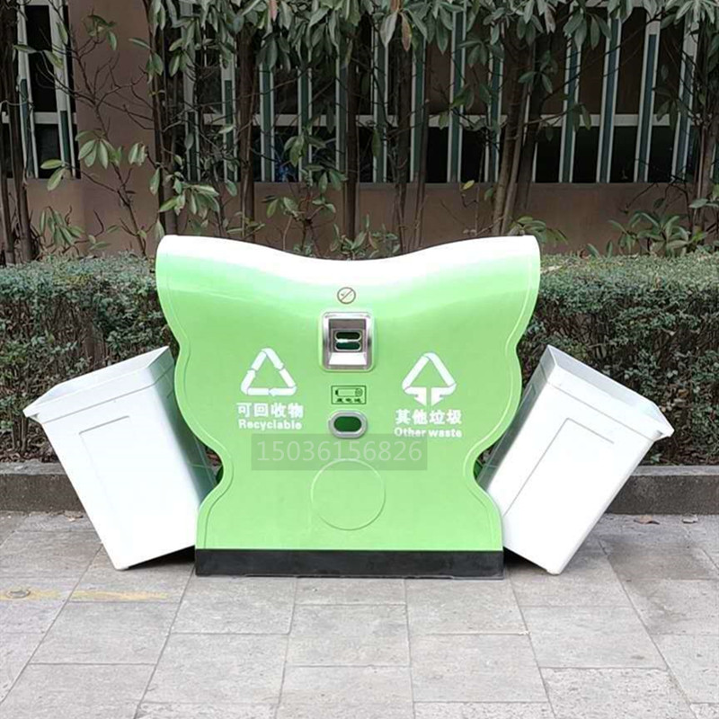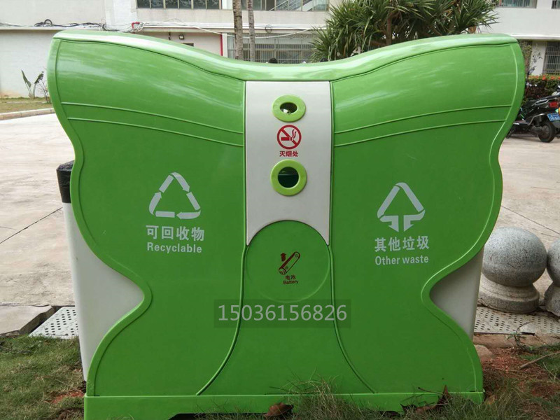 蝴蝶型分類環保垃圾桶果皮箱采用SMC復合材料,3500噸壓機模壓成型,內外光潔度一致。