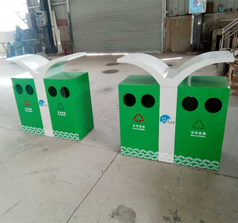 蝴蝶型分類環保垃圾桶果皮箱采用SMC復合材料,3500噸壓機模壓成型,內外光潔度一致。